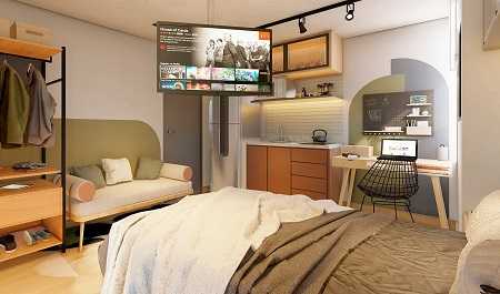 - 17m² / 19m² /24m² / 25m² ( inside build: Laundry, Gym, Co-working, party room, joke library)