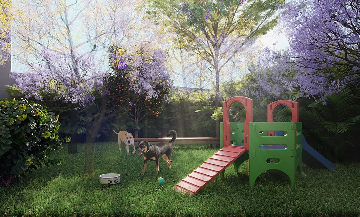 Leisure designed with care for your family: Bike rack, Collective laundry, Concierge, Toy room, Office, Service lung, Barbecue, Pet Care, Ballroom, Fitness, Playground.