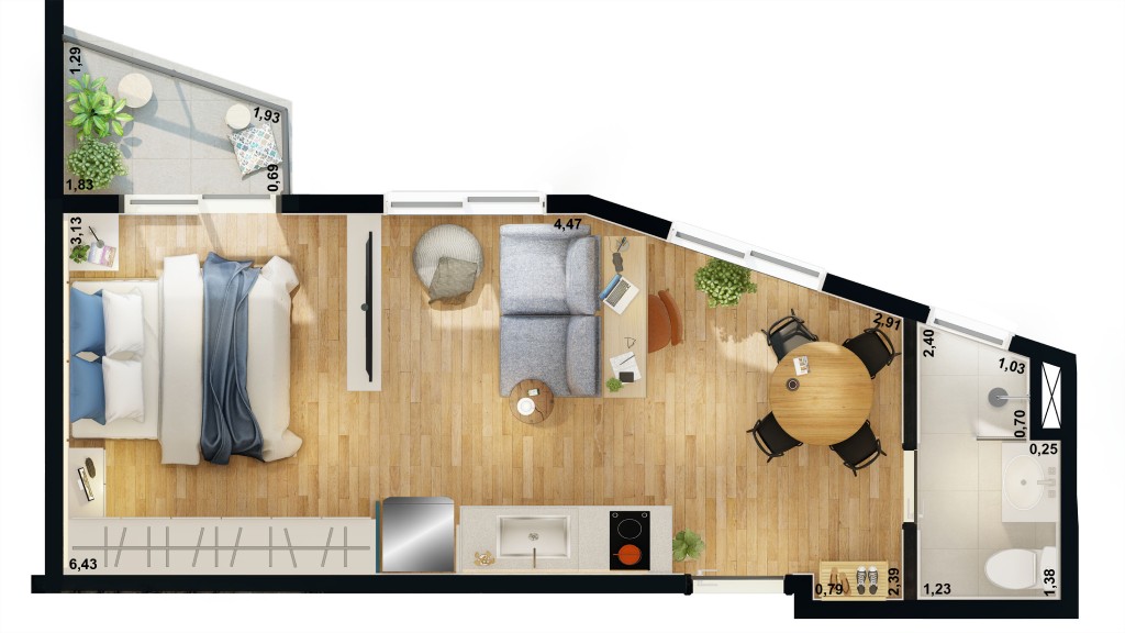 1 bedroom apartment 29,44m2